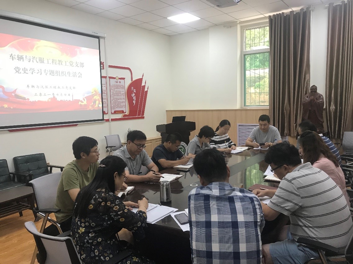 党史学习教育领导小组办公室《关于召开党史学习教育专题组织生活会的通知》要求,以及院党委关于党史学习教育工作的安排部署,能源动力工程学院车辆与汽服工程教工党支部于7月7日上午9:00在诚学楼118会议室召开党史学习教育专题组织生活会。会议由支部书记韩文艳同志主持,全体教工党员参加。