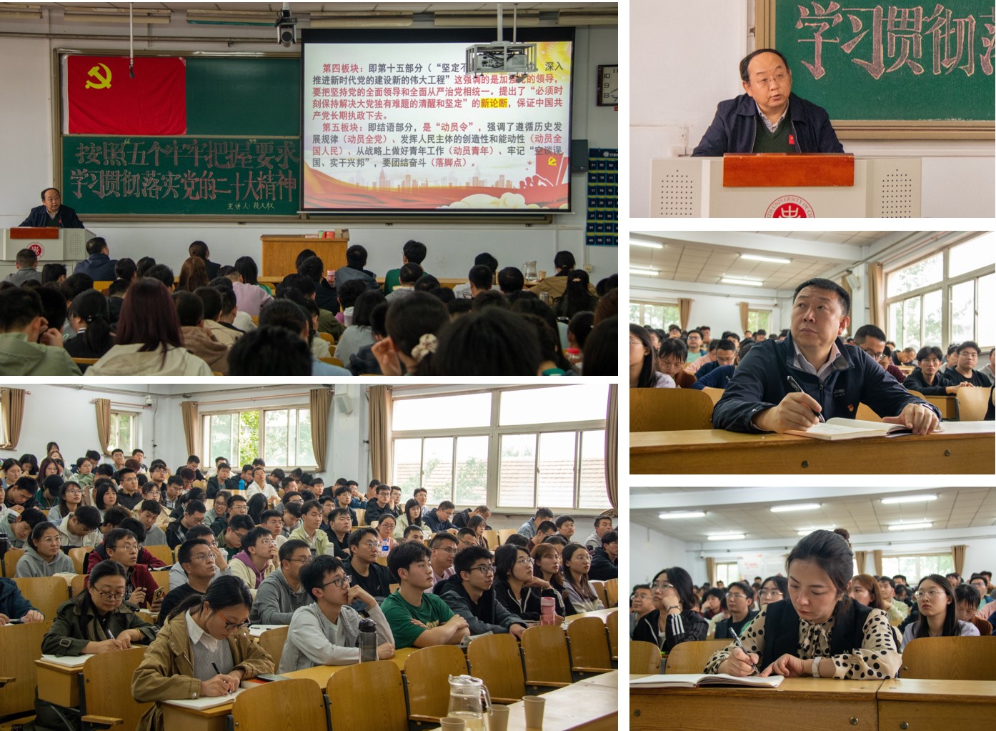 党委在08301H教室召开学习宣传党的二十大精神第二轮宣讲会。本场宣讲会邀请校宣讲团成员、马克思主义学院党委书记段义权同志作题为《按照“五个牢牢把握”要求,学习贯彻落实党的二十大精神》的专题报告。学院全体师生党员220余人参加此次宣讲,宣讲会由院党委书记顾宁同志主持。