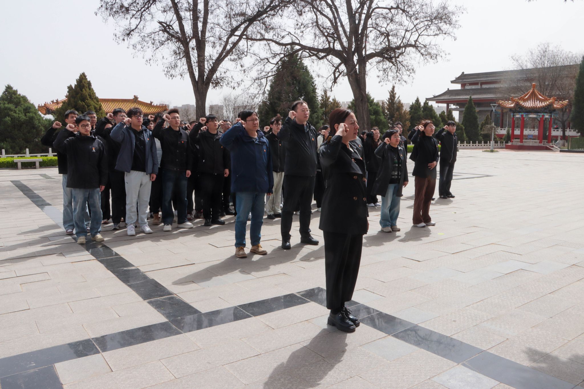 默哀仪式结束后,全体党员面向鲜红的党旗,高举右拳,重温入党誓词。任雁副书记领誓,铿锵有力的誓言在陵园上空久久回荡,充分彰显了新时代能动学院师生党员不忘初心、牢记使命,传承英烈精神、勇担时代重任的坚定决心。