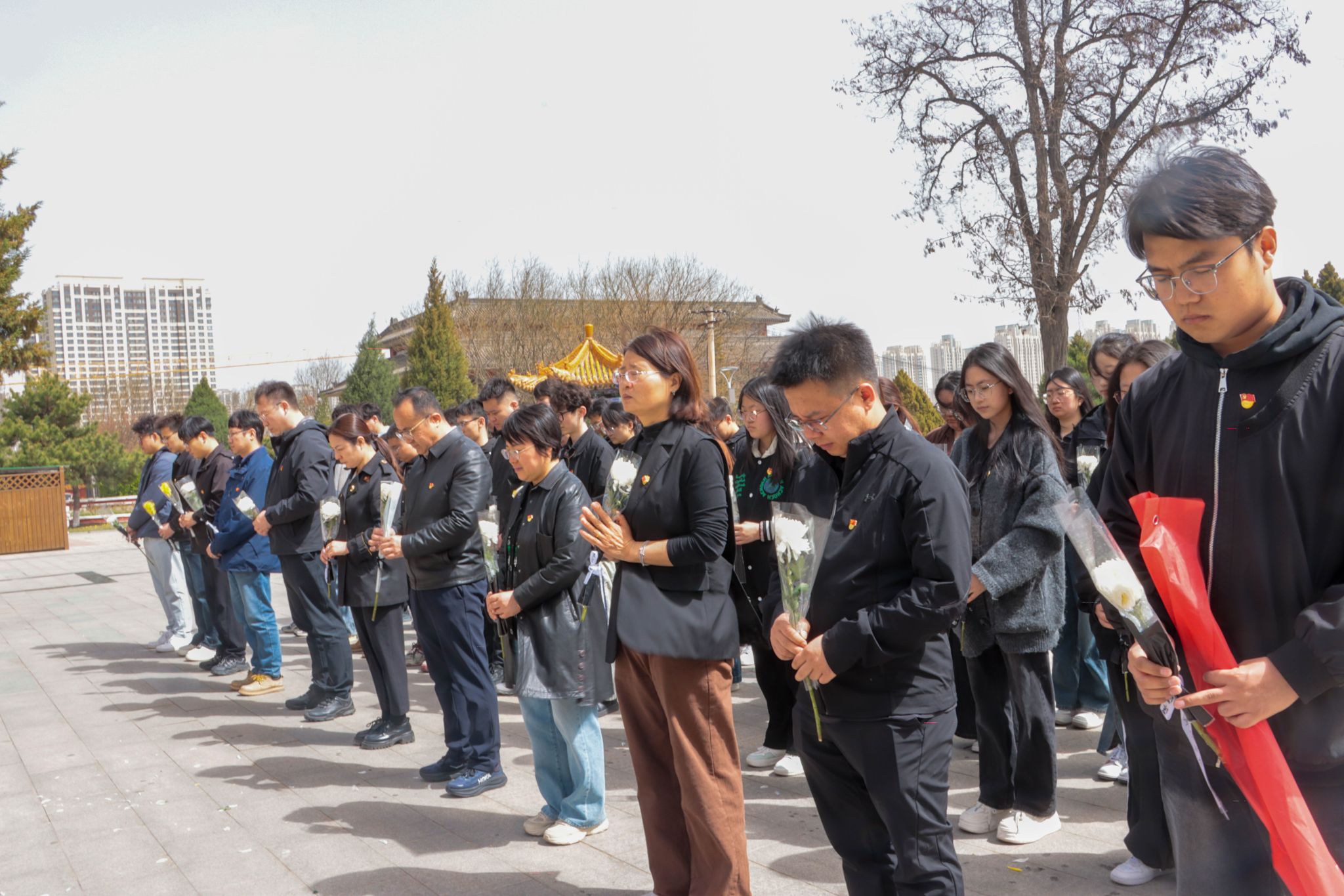 陵园内松柏苍翠、庄严肃穆,革命烈士纪念碑巍然矗立,承载着先烈们的英雄气节与不朽精神。在肃穆的氛围中,全体师生整齐列队、神情凝重。伴随着低沉悠扬的《献花曲》,师生代表手捧鲜花,缓步走向烈士纪念碑,郑重敬献。任雁副书记亲手整理花篮缎带,代表学院向为民族独立、人民解放、国家富强英勇献身的革命先烈,致以最崇高的敬意与最深切的缅怀。随后,全体人员肃立默哀,在静默中追思先烈们抛头颅、洒热血的峥嵘岁月,感悟革命先辈的初心使命与崇高信仰。