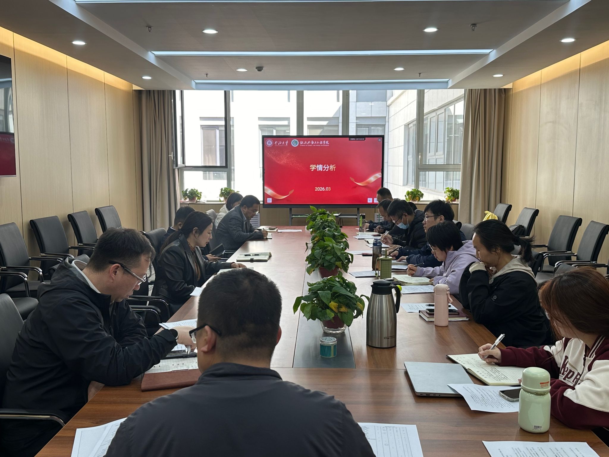 召开学情分析研判暨考研调剂工作专题会议,全面分析当前学生学习情况,统筹部署考研调剂帮扶工作。院党委书记、党委副书记兼副院长出席会议,团学工作办公室全体成员、教学办公室负责人、科研办公室负责人及 22 级主任参加会议。