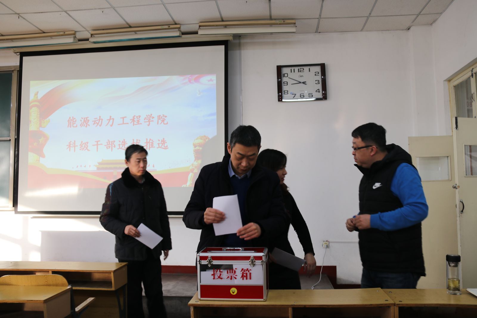 2018年1月20日上午08:20,能源动力工程学院于08201H召开了全院教职工大会暨科级干部选拔推选会议。会议由党委书记李运芝主持。