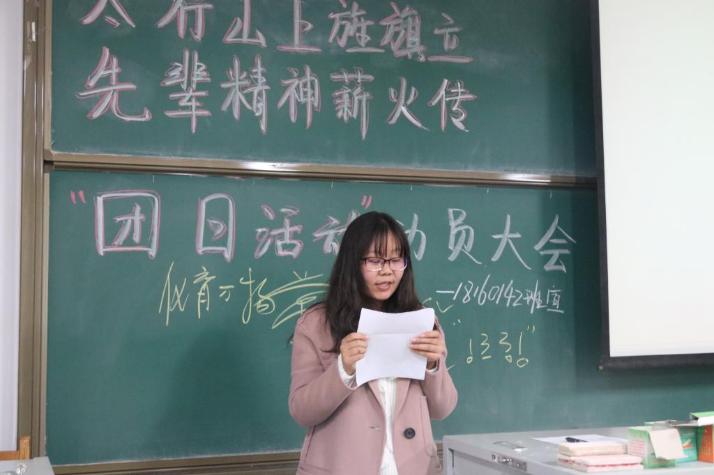 动员大会上,我支部很荣幸邀请到了院党委书记李运芝。李书记向我们讲述了党的十九大精神,并鼓舞大家不忘初心,牢记使命,为实现中国梦奉献青春力量。随后,团日活动正式开展。支部全体成员去爬二龙山,看碉堡,穿防空洞,感受战争时代留下的印记,体会先辈顽强斗争的精神。全体团支部成员为校园做义务打扫活动,大家体会劳动的辛苦,培养集体荣誉感最后由副班长带领同学们做调查问卷。
