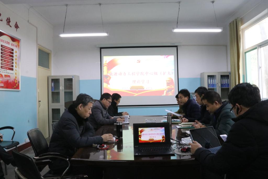 2019年1月21日14:15,能源动力工程学院在诚学楼二层会议室召开中心组(扩大)理论学习会议,会议由院党委书记李运芝主持,院领导班子、党委委员、支部书记出席,学科管理部负责人及科室负责人列席会议。