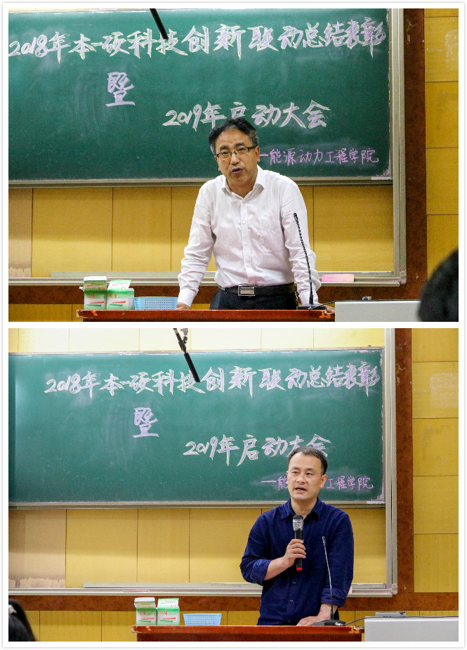 为增强能动学子创新创业能力,充分发挥优秀研究生在本科生群体中的先锋带头作用,5月24日下午7点半能源动力工程学院在09302举办了2018年本硕科技创新联动总结表彰暨2019年启动大会。出席本次大会的嘉宾有院党委书记李运芝、院长刘汉涛、副院长张翼、副院长胡胜亮、院团委书记李晓彧、学生科科长叶增民、辅导员乔洋老师。