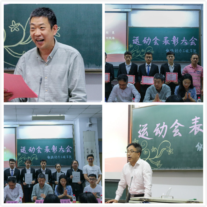 同学们在本届运动会中的出色表现,能源动力工程学院于5月28日7点30在11212教室举行运动会表彰大会。出席本次大会的嘉宾有院党委书记李运芝、院长刘汉涛、学生科科长叶增民、院团委书记李晓彧、学生科辅导员乔洋,研究生辅导员杨勇和唐金保出席了本次大会。