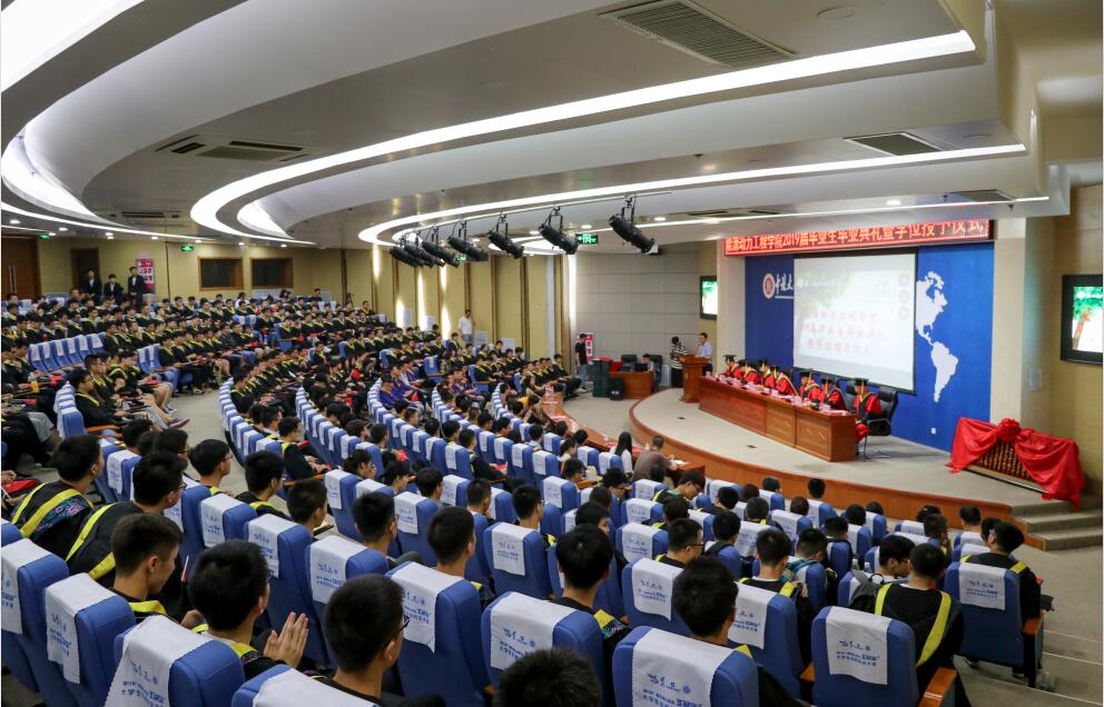 关于授予2019届毕业生李莉、高媛等314名同学学士学位的决定》。其中,毕业生捐赠仪式也在有条不紊地进行着,使得现场热情高涨。为了表达能动学子们对母校和恩师的感恩之情,研究生代表李杰和本科生代表程志豪上台讲述了自己弥足珍贵的求学时光,其中包括对时光荏苒的感怀,对母校的不舍以及对各位毕业生的美好祝愿。除此之外,在校生代表赵源以及毕业生家长代表也对毕业的同学们表达了自己的美好祝福。教师代表李斌茂老师也寄语同学们,希望各位能够以梦为马,仗剑天涯,拼出一个美好的明天。视频《向青春致敬》引得毕业生们对自己大学四年的时光回味无穷,感触颇深。