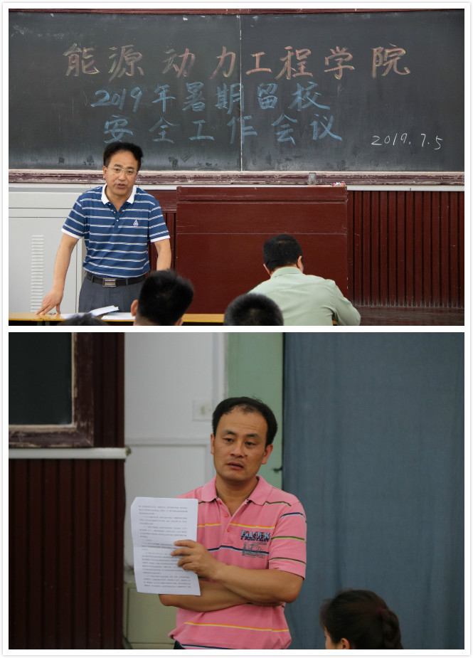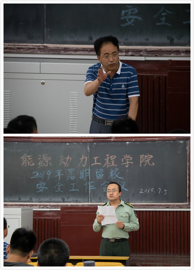 为了确保暑假留宿学生留宿期间的人身及财产安全,能源动力工程学院于2019年7月5日在07101教室举行了2019暑期留校安全工作会议。院党委书记李运芝、学生科科长叶增民,学生科李清岩老师以及全体留宿学生生参加了本次会议。