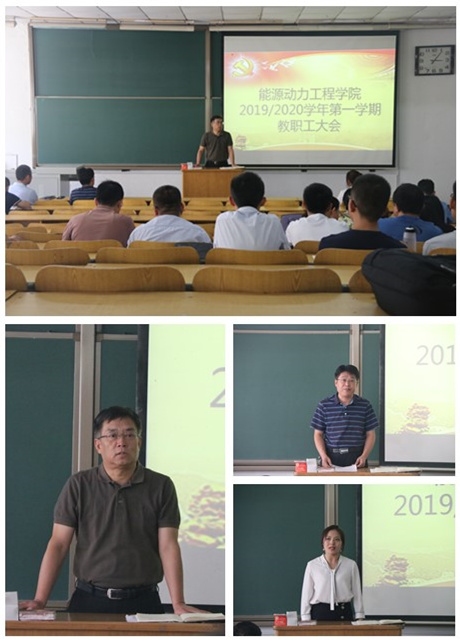 2019年8月31日下午15:00,能源动力工程学院在08101H召开2019/2020学年第一学期教职工大会,大会邀请了校党委副书记薛智、校党委委员组织部长贾献忠,学院领导班子全体成员和全院教职工参加会议,会议由院党委书记李运芝主持。