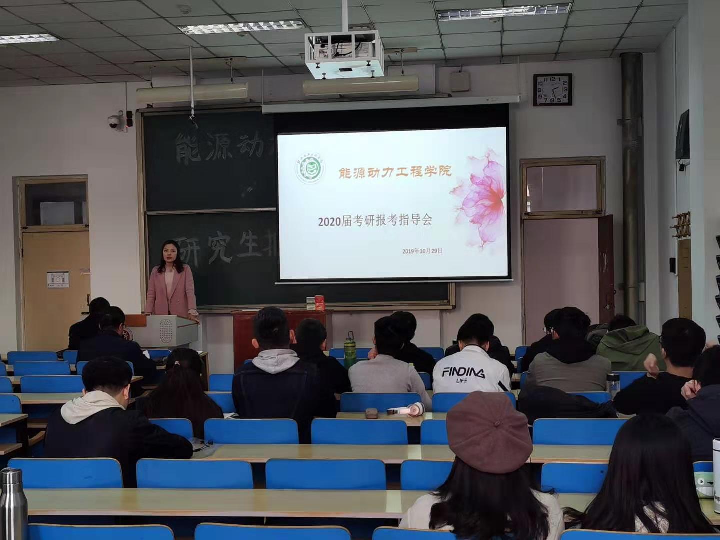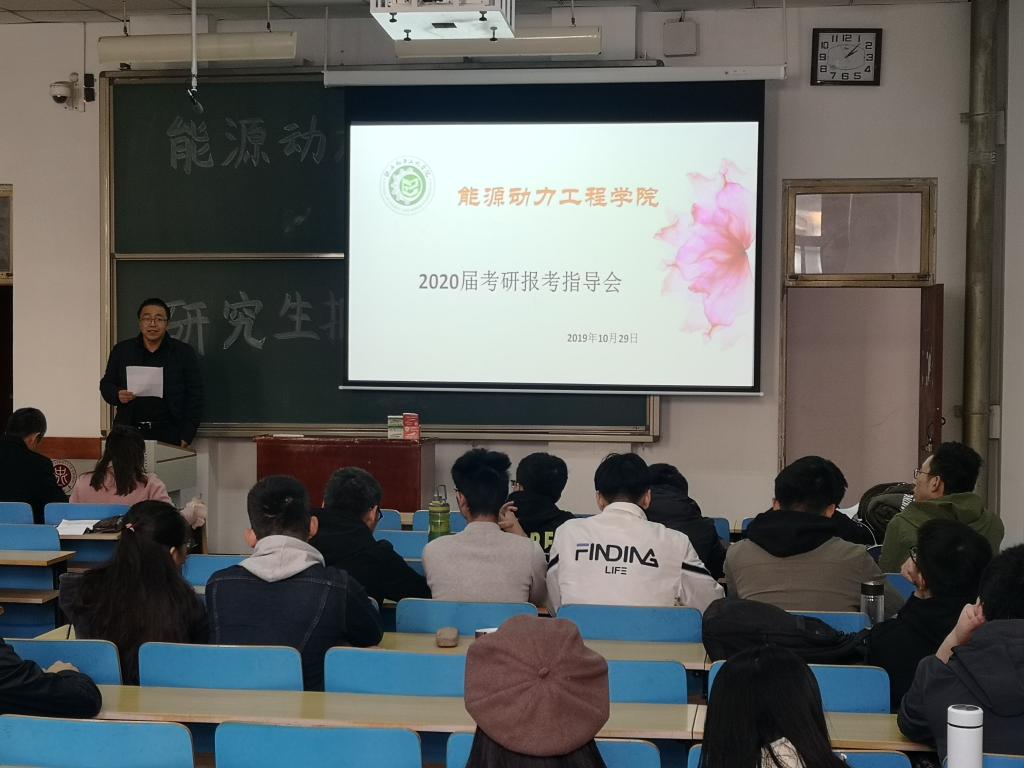 就业质量、提高学院学子考研成功率,能源动力工程学院于10月29日下午2点在11211H召开研究生报考指导会。源动力工程学院院长刘汉涛,院党委副书记兼副院长任雁,院科研与学科建设科科长王军为学院2020届全体考研学生进行了报考指导。