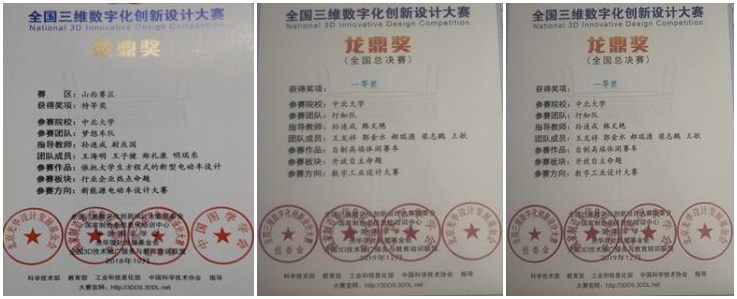 参赛的行知队(团队成员:能源动力工程学院王龙祥、郭金水、郝瑞源、梁志鹏、王敏,指导老师:孙连成、韩文艳),一路过关斩将,在山西省3D大赛荣获特等奖并进军全国总决赛,最终获得全国总决赛一等奖。