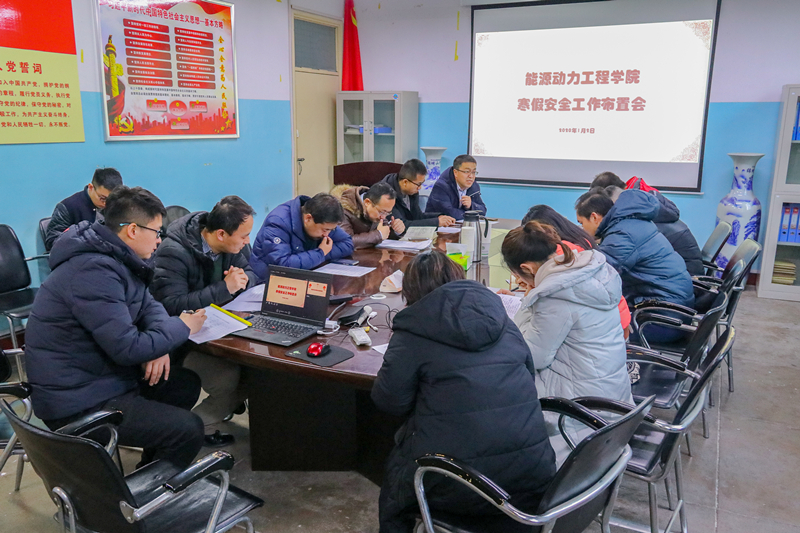 2020年1月2日能源动力工程学院于诚学楼201会议室召开全体班主任寒假安全工作布置会,全院辅导员班主任一同参加,会议由院党委副书记兼副院长任雁主持。