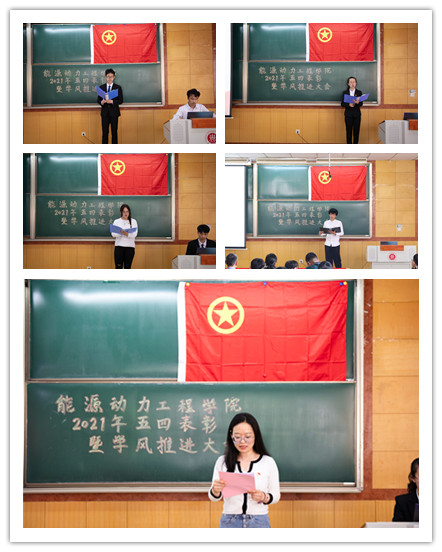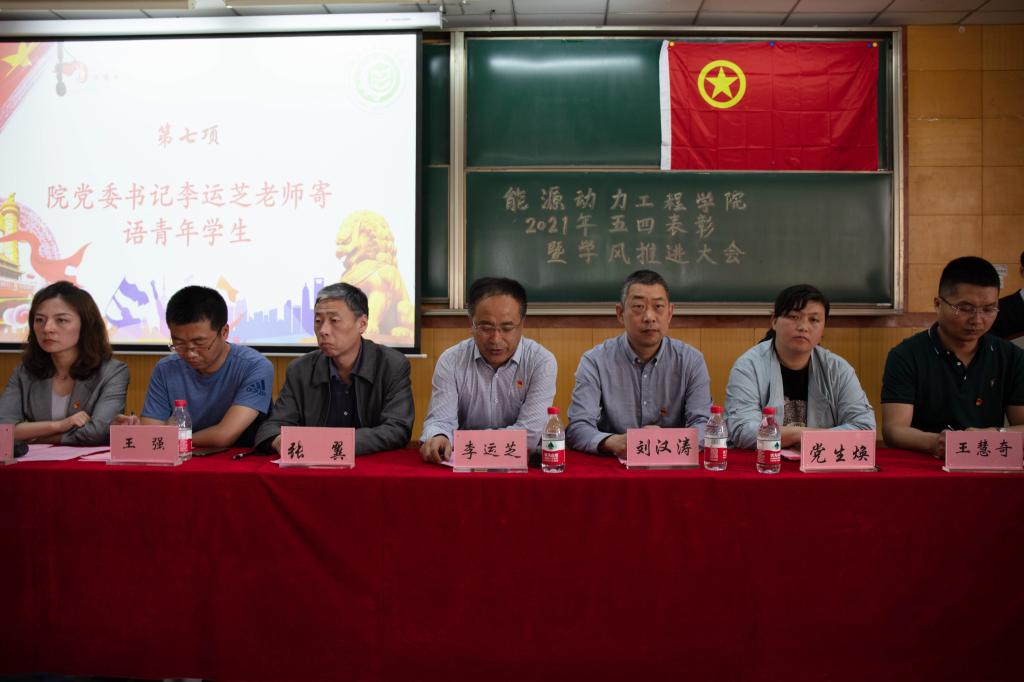 为表彰学院先进集体及优秀个人,并号召更多学生向先进看齐。能源动力工程学院于5月13日在09302教室举办能源动力工程学院2121年五四表彰暨学风推进大会。院党委书记李运芝、院长刘汉涛、副院长张翼、校团委综合办主任党生焕、能源动力系主任王强、能源材料系主任王慧齐出席会议。院党委书记兼副院长任雁担任主持人。学院全体辅导员、学生骨干、获奖集体及个人,19、20级各团支部代表参加此次活动。