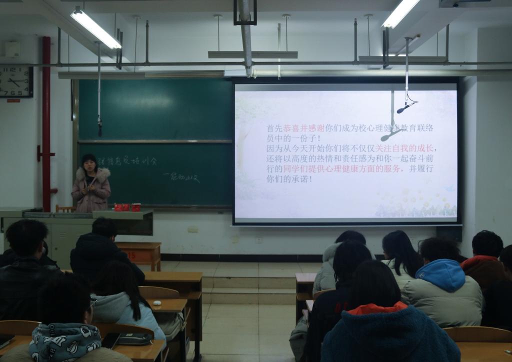 和人文社会科学学院于12月12日下午4点在15206H教室举办心理信息员培训会。本次培训会邀请校心理健康教育中心教师高林担任主讲嘉宾,学院全体心理联络员、信息员参与培训。培训会由心理辅导员李晓彧主持。